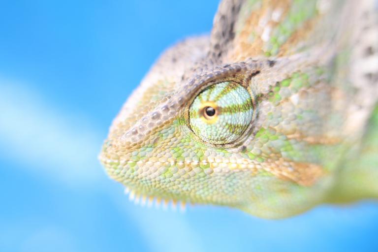 Keywords: macro chameleon yemen chameleon reptile animal green head eye insect eater dragon chamaeleonidae chamaeleo chamaeleon common chameleon close