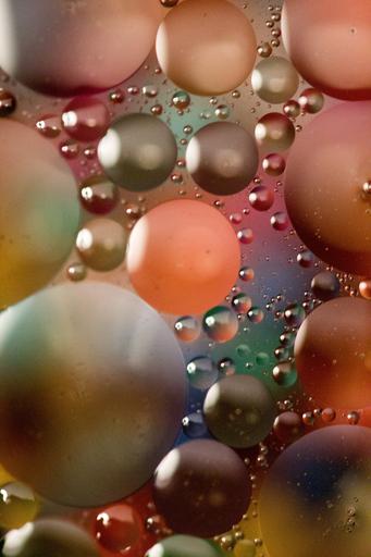 Keywords: macro spheres balls floating water light oil and water reflections colours colourful