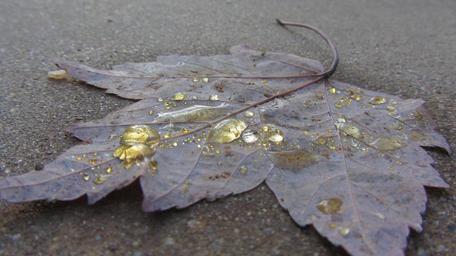 Keywords: macro water yellow fall season liquid droplet transparent splash texture water drop drip leaf