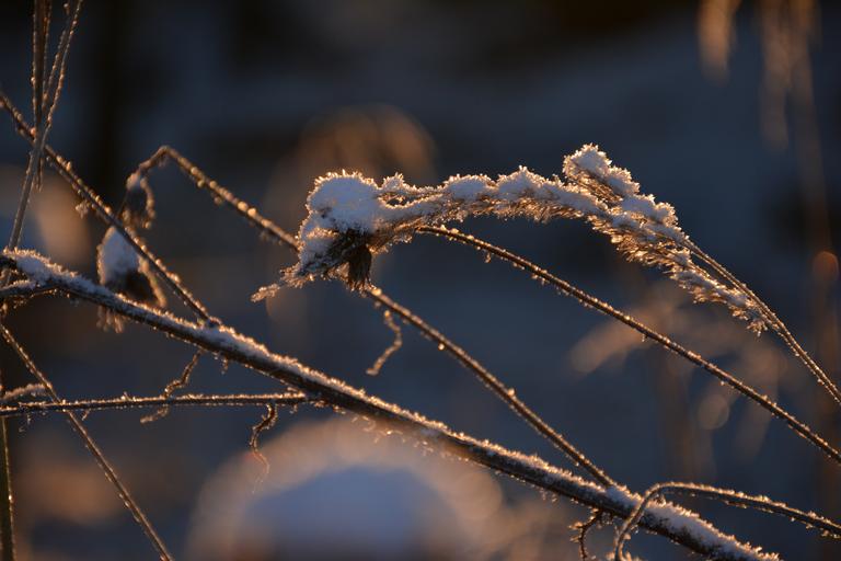 Keywords: macro winter under the snow closeup branch grass dry grass cold brown