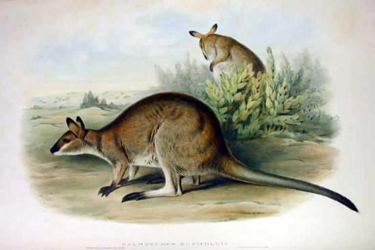 | Keywords: Macropus rufogriseus Gould.jpg Macropus rufogriseus ex Halmaturus ruficollis Mammals of Australia Vol II Plate 15 <br> http //www museum vic gov au/bioinformatics/mammals/images/Hal_rufi htm 1863 Creator John Gould PD-old-100 Kangaroos in art Macropus rufogriseus The Mammals of Australia John Gould |