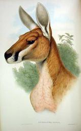 | Keywords: Macropus rufus Gould.jpg Macropus rufus Mammals of Australia Vol II Plate 6 <br> http //www museum vic gov au/bioinformatics/mammals/images/Osp_ruf2 htm 1863 Creator John Gould domaine public en raison de l'âge PD-old-100 Kangaroos in art Animal heads in art Macropus rufus The Mammals of Australia John Gould Macropus heads |
