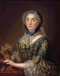 | Keywords: Madame Pierre de Rigaud de Vaudreuil.jpg century 18 Oil on canvas cm 80 62 unknown http //www lac-bac gc ca/portraits/009001-2910 8-f html other versions PD-old-100 DEFAULTSORT 1740c; Jeanne-Charlotte de Fleury Deschambault Donatien Nonotte 18th-century portrait paintings location missing House of Rigaud de Vaudreuil 1683 births 1763 deaths 18th-century oil portraits of women at half length 18th-century women of France Engageantes in art Marchionesses of France Lace caps in art Portrait paintings of women holding flowers Robe à la française Stomacher Watteau gowns |