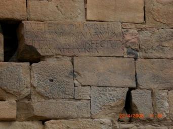 | Keywords: Madaure22.JPG fr Ruines du site antique Madaure Madaura Madaurius M'daourouch Inscription latine mentionnant un vétéran d'une cohorte urbaine et ses dons à la cité Il s'agit d'un des trois fragments de l'inscription CIL VIII 4679 I L Alg I 2128 dont le texte latin complet est «L ucius Caelius Sabinus fl amen p er p etuus veter anus coh ortis I urb anae fisci cur ator missus honesta missione arcum et statuam duplicatis decur ionatus et flamonii sui perp etui summis fecit idemq ue dedicauit ampliata pecunia ¦Â» en italique les passages correspondant au fragment photographié L'inscription fut débittée en morceaux à la fin de l'antiquité et réutilisée dans les fortifications own samir bouali 2008-04-22 watermark Ancient Roman inscriptions in Madaure CIL VIII 004679 Cohors I Urbanorum |