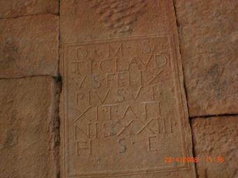 | Keywords: Madaure24.JPG watermark fr Ruines du site antique Madaure Madaura Madaurius M'daourouch Stèle funéraire d'époque romaine épitaphe de Tiberius Claudius Felix es Inscripción funeraria romana en las ruinas de la antigua Madauras M'daourouch Argelia correspondiente con ILAlg 1 2341 D is M anibus s acrum / Ti berius Claudi/us Felix/ pius vi/xit an/nis XXIII/ h ic s itus e st own samir bouali 2008-04-22 watermark Ancient Roman inscriptions in Madaure Tiberius Claudius Felix Dis Manibus inscriptions Latin inscriptions without nomenclature |