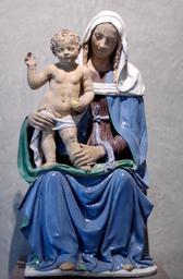 | Keywords: Madonna Buglioni Louvre ML25.jpg Seated Virgin holding the Christ Child on her right knee Partly glazed terracotta date unknown H 1 23 m 4 ft ¼ in W 65 cm 25 ½ in Museum Louvre Department of Sculptures Denon lower ground floor room 2 object history credit line Purchase 1851 accession number ML 25 Jastrow 2006 other versions La Vierge assise tenant l'Enfant sur son genou droit attribué à Santi Buglioni 1459-1521 Terre cuite partiellement émaillée date inconnue Statues of Madonna and Child in Paris Louvre Italian sculptures in the Louvre - Room 2 Santi Buglioni |