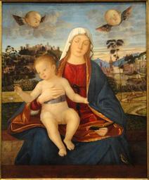 | Keywords: Madonna and Child, Vittore Carpaccio, c. 1505-1510, oil on panel - National Gallery of Art, Washington - DSC08842.JPG en Painting exhibited in the National Gallery of Art Washington DC USA This artwork is in the public domain because the artist died more than 70 years ago 2013-04-07 12 08 50 own Daderot PD-old cc-zero Madonna and Blessing Child by Vittore Carpaccio Uploaded with UploadWizard | ||||