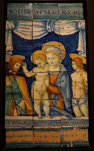 | View Original: | Madonna and Child with St Rocco and St Sebastian, Ligurian, 1547, view 1, majolica - Museo Diocesano (Genoa) - DSC01514.JPG (3101x5000) | |||