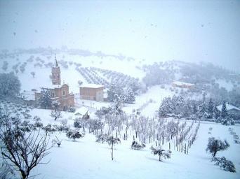 Keywords: Madonna della Rosa (neve).jpg it Vista della campagna di Ostra e del Santuario della Madonna della Rosa sotto la neve own Gamma rex 2005-01-28 Ostra Italy