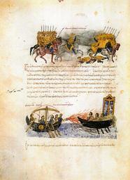 | Keywords: MadridSkylitzesFol34v.jpg Skyllitzes Matritensis fol 34v en Madrid Skylitzes from the Middle Ages unknown 11th-13th centuries <gallery> File Greekfire-madridskylitzes1 jpg </gallery> PD-old-100 Madrid Skylitzes Thomas the Slav Greek fire Navy of the Byzantine Empire Medieval miniatures of ships Greek manuscripts Ships of the Byzantine Empire in art |