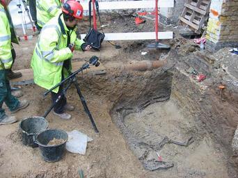 Keywords: Maggie and horse.PNG archaeological photographer and horse burial in re-cut ditch own 2006112 me public Archaeologists at work Archaeological excavations in England