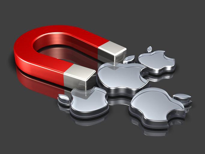 | Keywords: apple logo mac macintosh brand chrome metal metallic magnet pull lure attached collection norebbo render rendering illustration concept conceptual indoor 3d illustration of four chrome Apple logos attached to a large red magnet on a reflective gray surface 3d illustration of four chrome Apple logos attached to a large red magnet on a reflective gray surface |