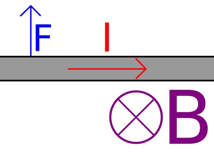 Keywords: Magnetic force q4 answer.svg en A wire with current force and magnetic field labelled own Sjlegg Lorentz force