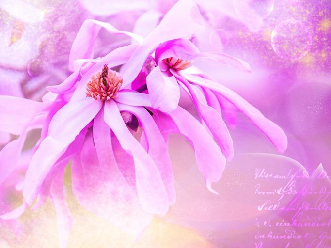 Keywords: magnolia blossom bloom pink beautiful tender flower font background
