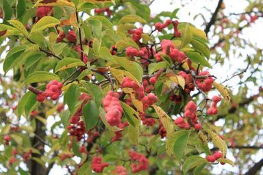 Keywords: magnolia fruits red ripe clusters seeds trees branches flora green leaves plants fruiting berries berry