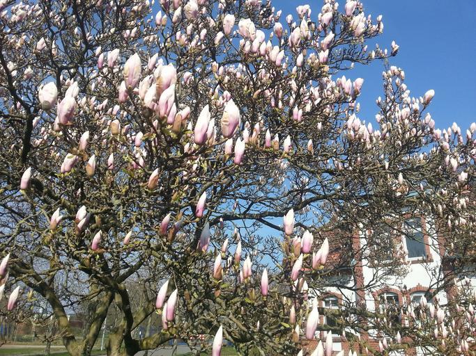 Keywords: magnolia spring tree flowers nature bud white pink sky magnolia blossom