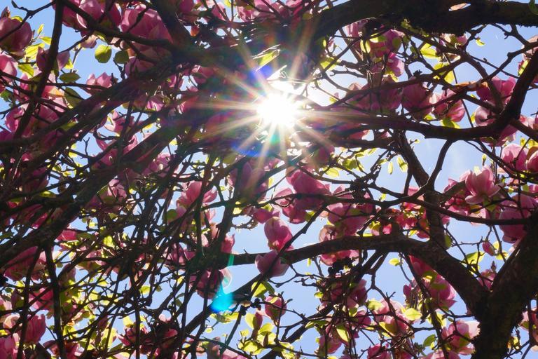 Keywords: magnolia tree back light spring sun tree aesthetic purple flower plant flowers magnolia flowers