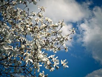 Keywords: magnolia tree blossom bloom spring garden nature frühlingsblüher bloom white blossom magnoliengewaechs magnolia leaves flowers sky magnolia blossom blütenmeer white magnolia tree tulip magnolia