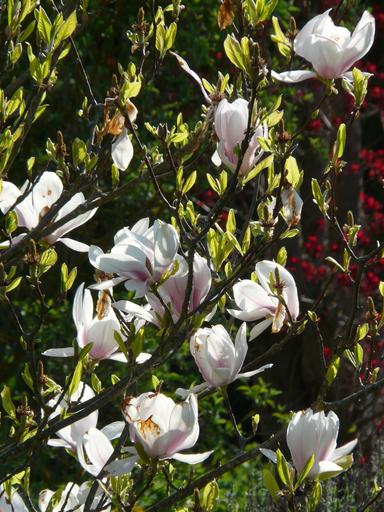 Keywords: magnolia tulip magnolia tree bush flowers bloom white back light plant ornamental plant