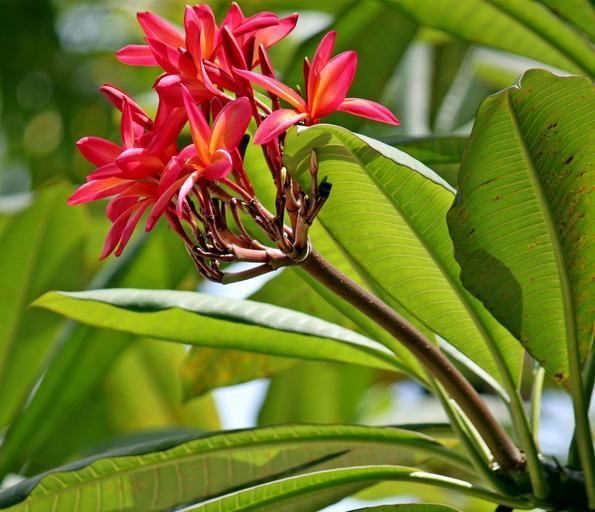 Keywords: magnolia yulan flower leaves Tree Green plumeria flowers frangipani tropical floral blossom red petal plant flora blooming foliage leaves bloom exotic