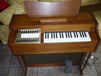 | Keywords: Magnus 890 electric chord organ.JPG Magnus Harmonica Corporation Magnus 890 electric chord organ This instrument creates sound by blowing air past reeds Circa mid 60's en wikipedia 2007-09-30 Armednuclearterrorist wikipedia en Armednuclearterrorist original upload log page en wikipedia Magnus_890_electric_chord_organ JPG 2007-09-30 13 57 Armednuclearterrorist 768×576× 203164 bytes <nowiki>Magnus 890 electric chord organ This instrument creates sound by blowing air past reeds Circa mid 60's</nowiki> ImageNote 1 157 253 148 38 768 576 2 __________________________B A S S___K E Y S_____ These keys play bass notes Like the other chord buttons on the panel these are arranged in the circle of fifths That's common in accordions and useful in that it tends to group needed buttons together for any given key signature Any song in a major key will mostly use the I IV and V chords and those buttons are grouped together when arranged in the circle of fifths For example songs in C major mostly call for C I F IV and G V and as you can see from the photo those three buttons are grouped together A song in A major would mostly call for A I D IV and E V and you can again see that those buttons are grouped together The circle of fifths order is particularly useful when applied to bass notes The root and fifth tones of any chord are the most important tones when playing bass and for any chord on this key panel the root and fifth tones will be adjacent making playing bass easy Examples G chord uses G D in the bass F major uses F C in the bass As you can see from the photo the buttons mentioned are adjacent Very few chord organs include bass notes and this normally limits the chord organ to being a toy because it's not possible to play a satisfying rhythmic accompaniment without the bass notes With the bass notes the chord organ is a totally different instrument and can make some seriously fun music The left hand can play a full sounding accompaniment in various rhythms like polka beguine ranchero and waltz Bass on an organ is normally played with the feet but this clever panel arrangement allows the thumb of the left hand to play bass That's easier than playing with the feet and also eliminates the expensive and bulky pedal board ImageNoteEnd 1 ImageNote 2 154 221 144 25 768 576 2 Chord buttons These buttons play chords and that's why this type of organ is called a chord organ This organ only provides two types of chords major white buttons and minor black buttons Fancier organs may additionally provide 7th minor 7th suspended and diminished chords Any piece of music can be played using only major and minor chords It will sound acceptable but not quite right if the music calls for some suspended diminished or augmented chords Lack of 7th chords is not really a problem you only lose a little additional coloration of the sound See the note attached to the bass keys for an explanation of the circle of fifths layout used A chord is three or more notes played simultaneously Major minor chords consist of three notes called the root the third and the fifth The root and fifth are the same between the two chord types but the third changes Memorizing the proper three notes for all 12 major and all 12 minor chords takes some practice as does playing the correct three notes with the left hand A chord organ makes it easy to play any chord with only one finger Another benefit is that the number of keys needed is reduced and thus the organ can be smaller The bass keys on this organ are far more valuable than would be additional chord types so it's a good tradeoff ImageNoteEnd 2 ImageNote 3 487 427 72 135 768 576 2 This floor standing chord organ includes a swell pedal so called because it can be used to cause the music to swell It's a volume pedal In this organ it will control the volume of all sounds the main keyboard the chords and the bass notes It works by constricting the amount of air flowing through the organ more air equals more volume Clever organists use the swell pedal to get many effects including swelling the music to cause an emotional swell in the listener causing the organ to seem to sustain notes and having the organ fade to silence at the end of a song It greatly adds to the coloration capabilities of this organ Some floor standing organs feature a swell feature that is operated with the right knee but this foot operated pedal is the same system used by big organs and most organists will prefer the pedal ImageNoteEnd 3 ImageNote 4 329 228 357 106 768 576 2 The main keyboard Called a manual in organ lingo this keyboard is used to play the melody and can also be used to play accompaniment during breaks in the melody Nicer chord organs feature a three octave main keyboard whereas smaller ones may only feature two octaves The keyboard is the same layout as on a piano but an organ requires a different playing style Piano is a percussion instrument that is controlled primarily by how you strike the keys An organ is controlled primarily by how you sustain the keys and you get the same sound no matter how hard or soft you hit them The chord organ is totally polyphonic so any number of keys may be sounded simultaneously The numbers above the keyboard are used for simplified chord organ sheet music which allows the musician to read music without having to know the names of the keys ImageNoteEnd 4 ImageNote 5 688 200 29 30 768 576 2 On/off knob Twist on/twist off ImageNoteEnd 5 ImageNote 6 300 133 219 35 768 576 2 Music light Lights up the sheet music on the music stand a useful feature ImageNoteEnd 6 ImageNote 7 113 198 201 24 768 576 2 Air vents A chord organ is essentially an accordion mounted in a box Instead of a bellows that the user pumps to blow air through the instrument the chord organ has an electric fan that provides air pressure Thus the chord organ sounds like an accordion The air vents allow the organ to exhaust air along with the sound The electric fan makes the chord organ easier to play
