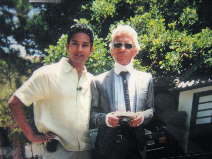 Keywords: Maharaj Lagerfeld.JPG en tv host Darrin Maharaj and fashion mogul Karl Lagerfeld at Pamela Anderson's residence in Malibu Ca own Kobayashiii 2002-09-14 Television personalities Karl Lagerfeld
