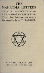 | Keywords: Mahatmaletters.jpg en The Book The Mahatma Letters to A P Sinnett from the Mahatmas M K H 1923 ed title page 1923-12-01 The Book The Mahatma Letters to A P Sinnett from the Mahatmas M K H London 1923 A T Barker other versions PD-old Theosophy |