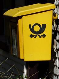 Keywords: mailbox yellow letters post deutsche post post horn box