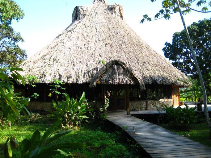 Keywords: Main lodge daytime.JPG en Main Lodge Cotton Tree Lodge Belize own Hollyposts 2008-03 Hotels in Belize Lodges