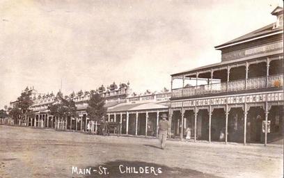 | Keywords: childers james reilly jamesreilly grand hotel grandhotel main street mainstreet vintage reillys hotel reillyshotel queensland australia shops isis recorder isisrecorder bookseller cru årgang jahrgang vendimia outdoor building architecture monochrome The Grand Hotel on the right was run by James Reilly from May 1907 to January 1909 so this photo can be dated then, with the words "Reilly's Hotel". The Grand Hotel on the right was run by James Reilly from May 1907 to January 1909 so this photo can be dated then, with the words "Reilly's Hotel". |