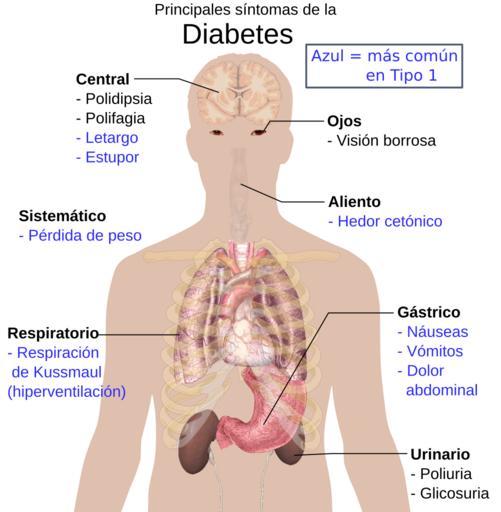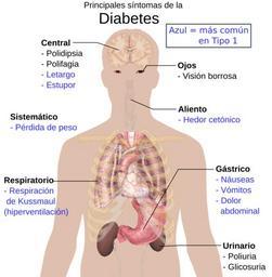 | Keywords: Main symptoms of diabetes es.svg es Principales síntomas de la Diabetes Azul más común en Tipo 1 Central Polidipsia Polifagia Letargia Estupor Sistémico Pérdida de peso Respiratorio Respiración de Kussmaul hiperventilación Ojos Visión borrosa Aliento Fetor cetónico Gástrico Náuseas Vómitos Dolor abdominal Urinario Poliuria Glicosuria en Overview of the most significant possible symptoms of diabetes See Wikipedia Diabetes Signs_and_symptoms for references To discuss image please see Template talk Human body diagrams 2015-03-19 File Main symptoms of diabetes svg Mikael Häggström other versions file Main symptoms of diabetes svg Custom license marker 2015 03 19 Uploaded with UploadWizard SVG diagrams of the adult male human body by Mikael Häggström Diabetes mellitus |