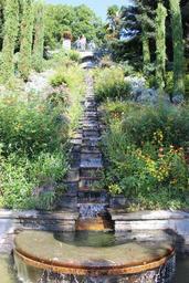 Keywords: mainau island waterfall stairs view lake constance water water staircase autumn flowers plant planted water feature park fountain