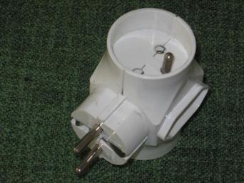 Keywords: Mains.plug3sockets.JPG European mains plug + 3 sockets own 7 3 2008 Julo Julo Mains adaptors Forbidden electrical items