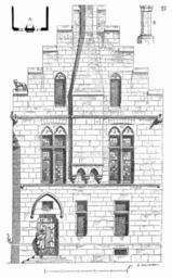 | Keywords: Maison.XIVe.siecle.Treves.png Certaines maisons de Trèves de Cologne de Mayence qui ont été élevées au commencement du XIII<sup>e</sup> siècle pourraient dans l'Île-de-France et la Champagne passer pour des maisons romanes On retrouve même encore dans quelques-unes de ces habitations des dispositions particulières qui n'appartiennent en France qu'au XII<sup>e</sup> siècle ou au commencement du XIII<sup>e</sup> telles sont par exemple ces cheminées dont les tuyaux sont portés en encorbellement sous les murs de face à partir du premier étage voy Cheminée Nous donnons 25 la façade d'une des vieilles maisons de la ville de Trèves qui date du commencement du XIV<sup>e</sup> siècle et qui montre sa cheminée au milieu du mur pignon sur la rue Dictionnaire raisonné de l'architecture française du XI<sup>e</sup> au XI<sup>e</sup> siècle ~ 1856 Eugène Viollet le Duc Viollet-le-Duc House Viollet-le-Duc Buildings in Trier |