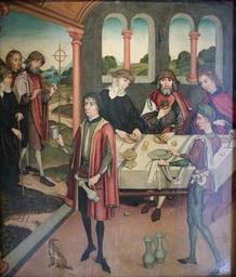 | Keywords: Maître de la légende de saint Jacques - Trois pèlerins en route vers Saint-Jacques-de-Compostelle.JPG en Master of the Legend of Saint James Three pilgrims on their way to Santiago de Compostela late 15th century oil on panel 86 x 72 cm late other date century 15 2011-07-14 12 57 12 https //plus google com/photos/104671720876332792250/albums/5641200869684619569 album https //plus google com/104671720876332792250/posts author Maître de la Légende de Saint Jacques/ Master of the Legend of Saint James PD-old-100 Paintings in the Musée de l'Œuvre Notre-Dame de Strasbourg Gothic paintings in Strasbourg 15th-century religious paintings in France 15th-century paintings in Alsace 15th-century paintings from Germany German paintings in France Pilgrims to Santiago de Compostela in art 15th-century oil on panel paintings in France 1451-1500 paintings Uploaded with UploadWizard |