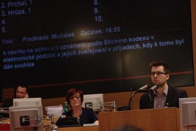 | Keywords: indoor Jakub Michálek předložil návrh, aby byla majetková přiznání podle etického kodexu dostupná v digitální podobě (a nebylo je tak možné jednoduše ztratit, jako se tomu stalo v minulosti). Návrh byl schválen. Jakub Michálek předložil návrh, aby byla majetková přiznání podle etického kodexu dostupná v digitální podobě (a nebylo je tak možné jednoduše ztratit, jako se tomu stalo v minulosti). Návrh byl schválen. | ||||
