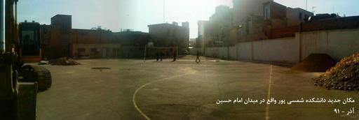 | Keywords: Makan Jadid Shamsipour Meydan Emam Hossein.jpg fa مکان جدید دانشکده شمسی پور واقع در امام حسین؛ ساختمان جدید در حد یک هنرستان کوچک می باشد و فضای آن نیز بسیار محدود است و همچنین حداقل امکانات آموزشی یک دانشکده مجهز مانند آزمایشگاه، سایت، سلف سرویس و از همه مهمتر کلاس درس مناسب را ندارد و این درحالی است که محل قبلی دانشکده با بهترین امکانات آموزشی در بهترین نقطه شهر میدان ونک می باشد و متاسفانه مکان قبلی توسط دانشگاه فنی و حرفه ای غصب شده و کاربری آن را برای راحت طلبی خود به اداری تغییر داده اند و دانشجویان دانشکده شمسی پور را به اجبار به ساختمانی در میدان امام حسین انتقال داده اند own Meysam Ghafari 2012-11-28 Cc-zero Uncategorized 2013 February 3 |
