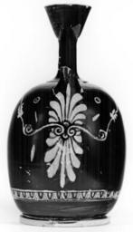 | Keywords: Makaria Painter - Squat Lekythos Depicting Eutychia, Eunomia and Paidia - Walters 48205 - Back.jpg This squat lekythos depicts Eutychia Eunomia and Paidia On the left Eutychia stands frontally looking right She holds a chest on her left forearm at waist level; her right hand hangs down by her side holding a necklace She wears a girded peplos diadem necklace earring and bracelets Next is Eunomia who walks solemnly to the right holding a necklace between her outstretched hands She wears a girded peplos necklace bracelets earring diadem and a decorated band which holds her hair in place On the right Paidia stands turned partially to the left holding a chest She wears a girded peplos necklace earring and bracelets; her hair is tied in back A diphros with a thick patterned cushion stands beside her The personifications on this vase from left to right are to be understood as Good Luck Good Order and Games and Play They are depicted as normal Athenian women and do nothing which might associate their actions with the literal meanings of their names ca 420 BC Classical terracotta H 8 x Max Diam 4 1/2 in 20 3 x 11 4 cm ; Diam at mouth cm 4 3 ; Diam at foot cm 8 4 accession number 48 205 3794 Joseph Brummer New York date and mode of acquisition unknown Henry Walters city Baltimore Walters Art Museum Henry Walters Acquired by Henry Walters 1925 Transliteration By the figures Eutychia Eunomia Paidia place of origin Attica Greece Walters Art Museum license Ancient Greek red-figure pottery in the Walters Art Museum Makaria Painter Media contributed by the Walters Art Museum needs category review Media contributed by the Walters Art Museum needs artist update |