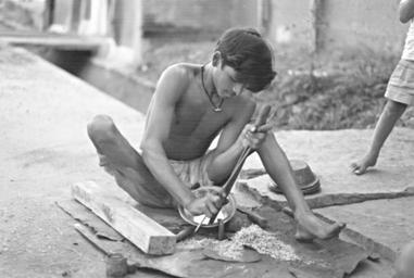 | Keywords: india mennonite board of missions mennoniteboardofmissions champa brass plates brassplates brass plate brassplate plate plates monochrome blackandwhite outdoor black and white Caption: Manufacturing of brass plates on a side street. Plate is being scraped to shape it and to provide a bright surface. Citation: Mennonite Board of Missions Photographs, 1898-1967. IV-10-007.2 Box 4 Folder 17. Mennonite Church USA Archives - Goshen. Goshen, Indiana. Caption: Manufacturing of brass plates on a side street. Plate is being scraped to shape it and to provide a bright surface. Citation: Mennonite Board of Missions Photographs, 1898-1967. IV-10-007.2 Box 4 Folder 17. Mennonite Church USA Archives - Goshen. Goshen, Indiana. |