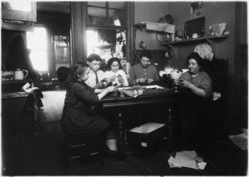Keywords: Making neckties in the kitchen. The 11 year old girl and 13 year old boy work on the ties every day after school. The... - NARA - 523523.tif Scope and content General notes 523523 Local identifier 102-LH-2877 Department of Commerce and Labor Children's Bureau 1912 - 1913 NARA-Author Hine Lewis Wickes 1874-1940 Photographer 1122914 <br /> Still Picture Records Section Special Media Archives Services Division NWCS-S National Archives at College Park 8601 Adelphi Road College Park MD 20740-6001 1912-02-23 Record group Record Group 102 Records of the Children's Bureau 1908 - 2003 Record group ARC 431 National Child Labor Committee Photographs taken by Lewis Hine compiled ca 1912 - ca 1912 documenting the period 1908 - 1912 Series ARC 523064 File unit File unit ARC Variant control numbers NAIL Control Number NWDNS-102-LH-2877 yes Other versions <gallery> File Making_neckties_in_the_kitchen _The_11_year_old_girl_and_13_year_old_boy_work_on_the_ties_every_day_after_school _The _-_NARA_-_523523 tif tif File Making_neckties_in_the_kitchen _The_11_year_old_girl_and_13_year_old_boy_work_on_the_ties_every_day_after_school _The _-_NARA_-_523523 jpg jpg </gallery> NARA-cooperation PD-USGov Child labor in the United States NARA TIF images with categorized JPGs