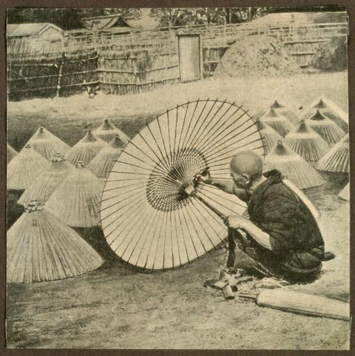 Keywords: umbrella parasol japan japanese 1860-1910 18601910 handicraft work bw blackandwhite sephia hand coloured handcoloured coloured colored old vintage kobe photo border outdoor monochrome black and white An umbrella maker in Kobe, Japan. Cliché print from an unknown Danish magazine. From Museum keeper Th. Thomsen’s posthumous papers No. es_b_00632 Year: 1860-1910 An umbrella maker in Kobe, Japan. Cliché print from an unknown Danish magazine. From Museum keeper Th. Thomsen’s posthumous papers No. es_b_00632 Year: 1860-1910
