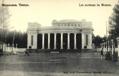 | Keywords: Malakhovka theatre 01.jpg Теат в алаховке Отк ытка Пост оен в 1911 по п оекту Леона Даукша http //gctm livejournal com/13149 html 1911 Published by A A Gorozhanin 1911 Architect Leon Dauksha 1866 - 19 09 1917 PD-RusEmpire Malakhovka theatre |