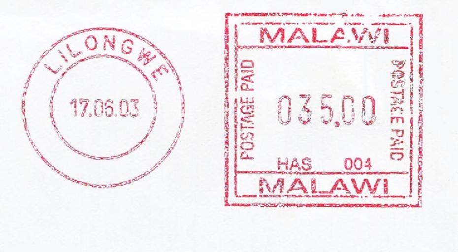 Keywords: Malawi stamp type C12.jpg en Meter stamp catalog image Malawi type C12 Richard Stambaugh Richard Stambaugh 2012-02-04 Meter stamps