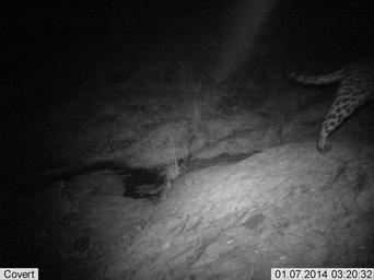 | Keywords: monochrome blackandwhite black background black and white [UA Jaguar 2014 01-07.jpg] Male jaguar photographed by automatic wildlife cameras in the Santa Rita Mountains on January 7, 2014, as part of a U.S. Fish and Wildlife Service/Department of Homeland Security-funded jaguar survey conducted by University of Arizona. This is the second of two jaguar photos taken from paired cameras (both sides of jaguar photographed) on January 7. This jaguar has been photographed repeatedly in the Santa Rita Mountains. Photo Courtesy of UA/USFWS [UA Jaguar 2014 01-07.jpg] Male jaguar photographed by automatic wildlife cameras in the Santa Rita Mountains on January 7, 2014, as part of a U.S. Fish and Wildlife Service/Department of Homeland Security-funded jaguar survey conducted by University of Arizona. This is the second of two jaguar photos taken from paired cameras (both sides of jaguar photographed) on January 7. This jaguar has been photographed repeatedly in the Santa Rita Mountains. Photo Courtesy of UA/USFWS |