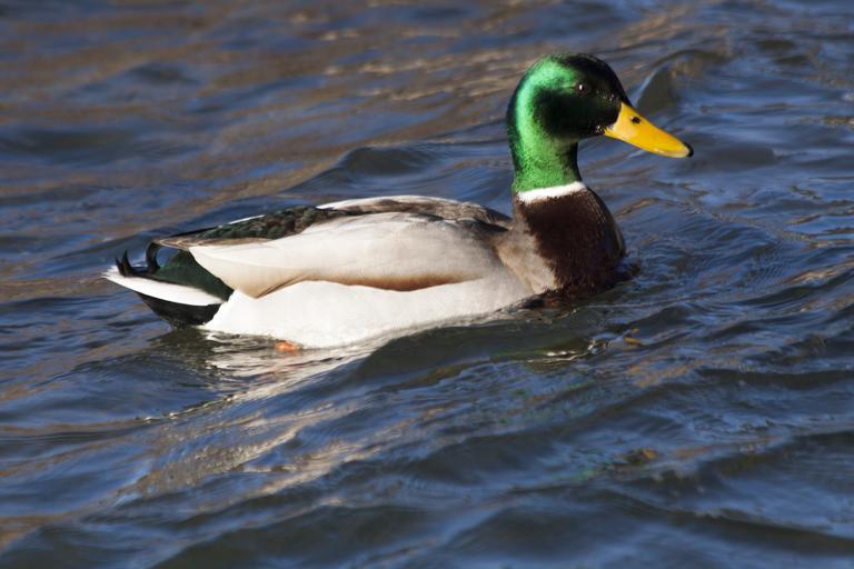 Keywords: mallard anas platyrhynchos drake bill yellow duck bird animal water swim lake mirroring