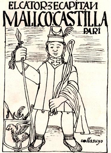 Keywords: Mallco Castilla Pari.jpg EL CATORZE CAPITÁN MALLCO CASTILLA PARI / collasuyo Zeichnung zur Beschreibung von Mallco Castilla Pari des vierzehnten Häuptlings des Collasuyo Ilustration showing Mallco Castilla Pari fourteenth chief of Collasuyo Dibujo explicativo de Mallco Castilla Pari décimocuarto capitán del Collasuyo ~ 1615 1616 http //www dibam cl/Recursos/Contenidos/Museo 20Nacional 20de 20Historia 20Natural/imagenes/guaman jpg Recursos de Dirección de Bibliotecas Archivos y Museos Santiago·Chile<br> cite book Felipe Guamán Poma de Ayala 1615 El primer nueva corónica i buen gobierno http //www kb dk/permalink/2006/poma/info/es/frontpage htm 2014-01-11 page 169 Felipe Guamán Poma de Ayala or 1534 1556 - or 1615 1644 PD-old-100-1923 Nueva corónica y buen gobierno |