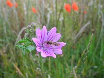 Keywords: mallow insect blossom bloom violet meadow nature hoverfly flower purple