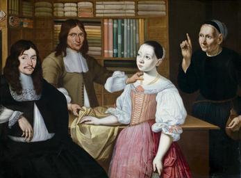 | Keywords: Målning. I klädeshandeln. Adrien Bloem - Hallwylska museet - 86718.tif Konstnären kan sannolikt identifieras som Adrian Blum som var hovmålare till Leopold I i Wien Konstnären finns registrerad i Leopold I s tjänst mellan ca 1668 och 1694 Även motivet talar för en sådan slutsats Det tyder på ett beroende till Frans van Mieris d ä och dennes målning Hos sidenkramhandlaren signerad 1660 som införlivades i Leopold I s konstsamling kort efter utförandet nu i Kunsthistorisches Museum Wien inv nr 586 Naumann II 1981 nr 31 s 33-35 Gesten när mannen känner på tygets kvalitet med den högra handen och berör flickans hals med den vänstra liksom för att jämföra de båda återfinns också i målningen av Frans van Mieris som visar en förmögen man på visit i en klädeshandel Denna kärleksfulla gest diskuterades av de Jongh i utställningskatalogen Tot Lering en Vermaak Amsterdam 1976 II nr 42 som senare åberopade Stockholmsmålningen Till höger gör den gamla kvinnan en varnande gest och håller fram ett mynt i den vänstra handen Både tyget och flickan kommer att kosta mannen pengar Det finns en gammal man i bakgrunden på van Mieris målning som gör en liknande varnande gest Tidigare har man ansett att målningen också innehåller fyra porträtt men med tanke på innehållet är detta osannolikt Målningen kan av dräkterna att döma dateras till ca 1670 Inga andra verk av Blum eller Bloem är kända Frimmel nämner en kopia efter van Mierismålningen av Adam Braun men det är troligen en hänvisning till denna målning Frimmel 1913 s 370 nr 75 <br/><br/>The artist can probably be identified as Adrian Blum court painter to Leopold I in Vienna He is recorded in the service of Leopold I between about 1668 and 1694 The subject also points in favour of such a conclusion It suggests the influence of Frans van Mieris the Elder and his painting At the Silk Merchant´s signed 1660 which was added to Leopold I´s art collection after its completion and is now in Kunsthistorisches Museum Vienna inv no 586 in Naumann II 1981 no 31 pp 33-35 <br/>The gesture of the man feeling the quality of the cloth with his right hand and touching the girl´s neck with his left as if comparing the two also occurs in a painting by Frans van Mieris which shows a wealthy man visiting a draper's shop This amorous gesture was discussed by de Jongh first in the catalogue of the exhibition Tot Lering en Vermaak Amsterdam 1976 II no 42 and later with reference to the Stockholm painting On the right the old woman makes an admonitory gesture and holds out a coin in her left hand Both the cloth and the girl are going to cost the man money There is also an old man making an admonitory gesture in the background of the painting by van Mieris Formerly the painting was described as showing four portraits but in view of its subject matter this is unlikely Judging by the costumes the painting can be dated to c 1670 <br/>No other works by Blum or Bloem are known Frimmel mentions a copy after the van Mieris painting by Adam Braun but this is presumably a reference to the present painting Frimmel 1913 p 370 no 75 original caption Målning I klädeshandeln Adrien Bloem HWY GR XXXII B 75 <br/> Nyckelord Bloem Affär Handel Målning Kläder 1600-tal Föremålsbild Textilier Förvaring Nederländerna ca 1670 oil on canvas size cm 38 5 28 5 HWY Henrik Jan Antoni Raedt van Oldenbarnevelt Frederic Muller Ett konsthandelshus 100 år 1970 Nationalmuseum Stockholm Klädd och oklädd 1996 Nationalmuseum Stockholm place of origin NL original filename hm_dig4489_3319 14103 inventory number HWY XXXII B 75 86718 PD Jens Mohr Jens Mohr Clothing in art Paintings in the Hallwylska museet Media contributed by LSH unmatched creator Media contributed by LSH unmatched keyword Textile shops in art Media contributed by LSH 2013-10 |
