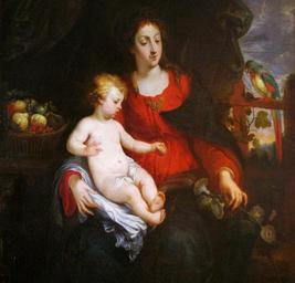 | Keywords: Malo Madonna and Child in a garden arbour.jpg Artwork Creator Vincenzo Malo s 1630 oil canvas Institution National Museum Warsaw Not on view accession number object history ProvenanceEvent deposit St Andreas and St Albert Church Warsaw credit line Demaged in a fire that broke out in the church in 2008 The painting with colors and composition referring to Rubens' style if filled with symbols A bindweed held by Virgin is a symbol indicating that she always followed God's word also signifying the charity The Child hold a pomegranate - a sign of future torment This fruit can also signify gifts of the God or the Church itself A colorful parrot on a wooden fence indicates obedience and motherhood of Mary The painting's massage is that happiness and peace depends on the subordination to the good and on sacrifice Archives historiques et littéraires du Nord de la France et du Midi de la Belgique Vol 5 1844 p 451 http //oczamiduszy pl/symbolizm-sakralny/ oczamiduszy pl See below PD-old-100 DEFAULTSORT 1630s; Madonna and Child in a garden arbour Vincenzo Malo 17th-century paintings in the National Museum in Warsaw Baroque paintings in the National Museum in Warsaw Flemish paintings in the National Museum in Warsaw St Andreas and St Albert Church in Warsaw Parrots in paintings 17th-century religious paintings in Poland 17th-century paintings of Madonna and Child 17th-century oil on canvas paintings in Poland Paintings of Madonna and Child in Poland |