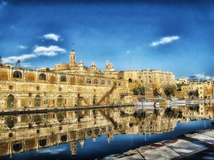 Keywords: malta buildings sky clouds canal waterway reflections water pier dock hdr